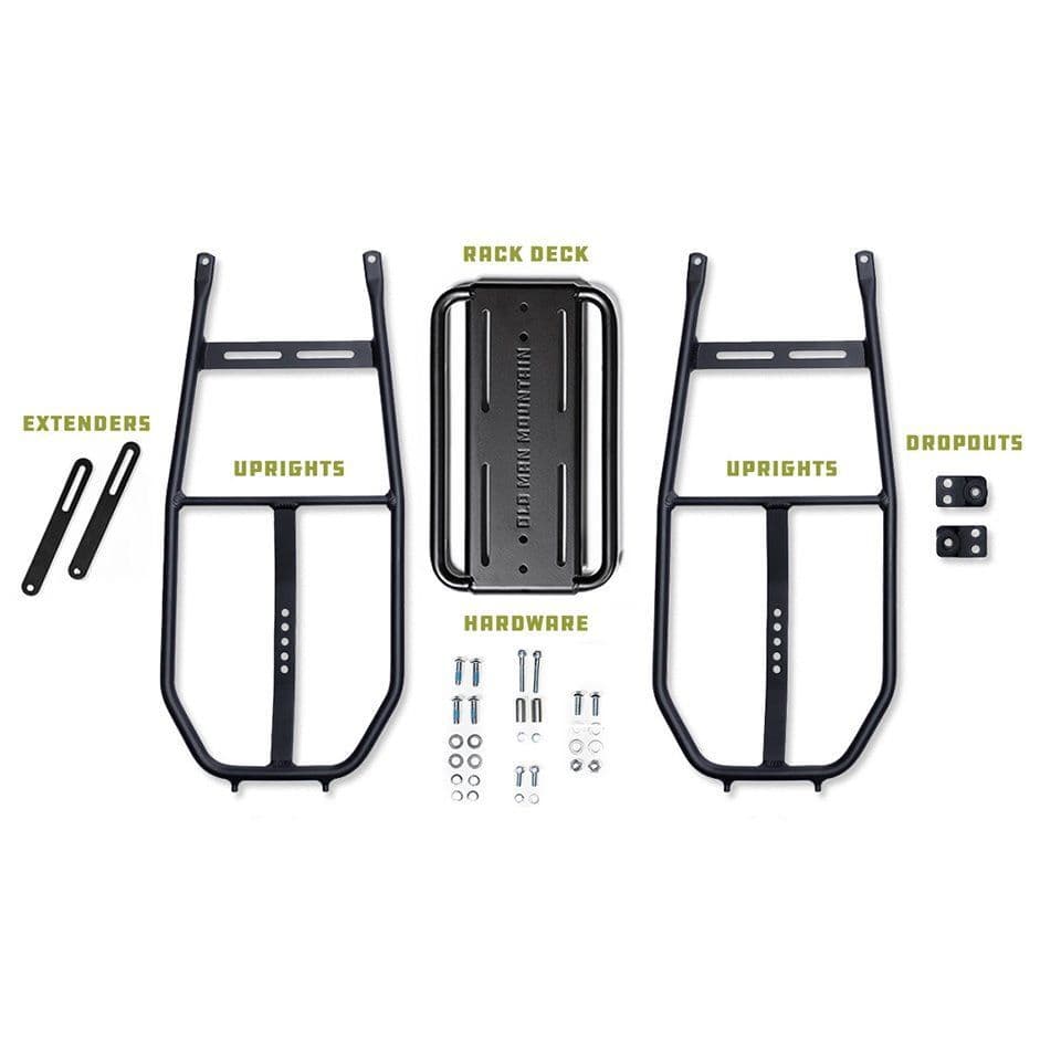 Front Racks Home / Bags, Racks & Straps / Racks / Front Racks / Old Man Mountain Impala Lowrider Front Rack Old Man Mountain Impala Lowrider Front Rack View more images Old Man Mountain Impala Lowrider Front Rack £175.00 Stock Status: In Stock Add to your Wish List Description The Impala Lowrider is an ultra-stable rack designed to carry heavy loads on gravel, paved roads, and wide trails where navigating through large rocks and tight bushes is not a concern. The extended side frames with extra low pannier rails carry the weight of panniers on the wheel centre instead of 6” above it like a standard rack, such as the Divide. This dramatically lowers the bike’s centre of gravity and provides ultra-stable handling. Unlike most other lowrider racks on the market, the Impala has a cargo platform above the wheel, keeping your gear easy to access without cluttering up your handlebars. The Impala Lowrider fits up to 29 x 2.3 inch tyres. Front specific. Carries panniers over the wheel centre Height adjustable to fit a wide range of tire and wheel sizes. 25kg load capacity. (18kg on pannier rails, 7kg on the deck) Weight: 1124g Made from 6061 aluminium, the racks are lightweight, stiff, and strong. The main rack frame is made of 1/2" (13 mm) diameter tubing for durability, and the pannier rails are 3/8" (10 mm) diameter to fit all panniers. The deck measures 6.3" x 10.5" (161 mm x 266 mm) The deck includes slots for easily lashing gear in place and holes for mounting a light. The Impala Lowrider comes eyelet mount ready, with optional fit kits available for thru axle or QR mounting. Powder coated in a sleek and refined shade of black A perfect rack for an Old Man Mountain basket Made in Taiwan Reviews Customer reviews No reviews left yet Write a review Most RecentTop Rated No reviews have been left for this product, be the first to leave a review Attributes Brand: Old Man Mountain Product Code: RAOML001K Weight: 0.1kg